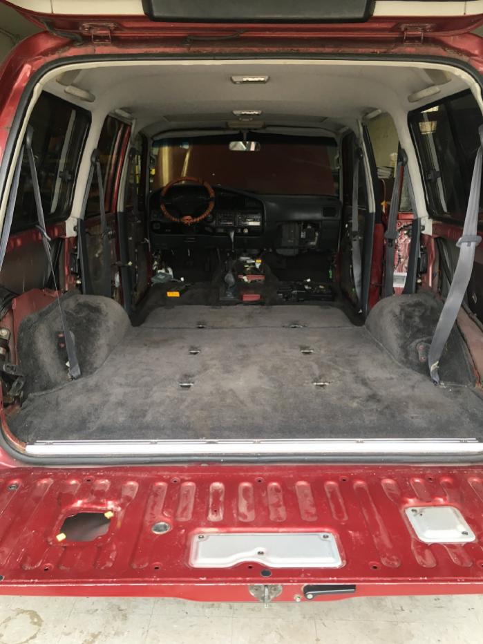 Only 3 weeks left until the trip. Things are coming together. The electrical is almost done. Some of the wires had to be run under the carpet, so we pulled everything off the back and cleaned before starting to assemble.