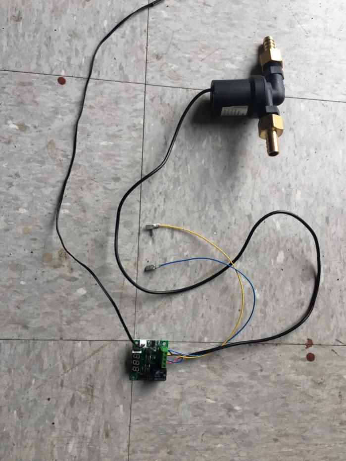 The water from the ‘hot water tank’ gets circulated with a pump that is being controlled by a thermostat. A switch on the dash will turn on and off the pump.