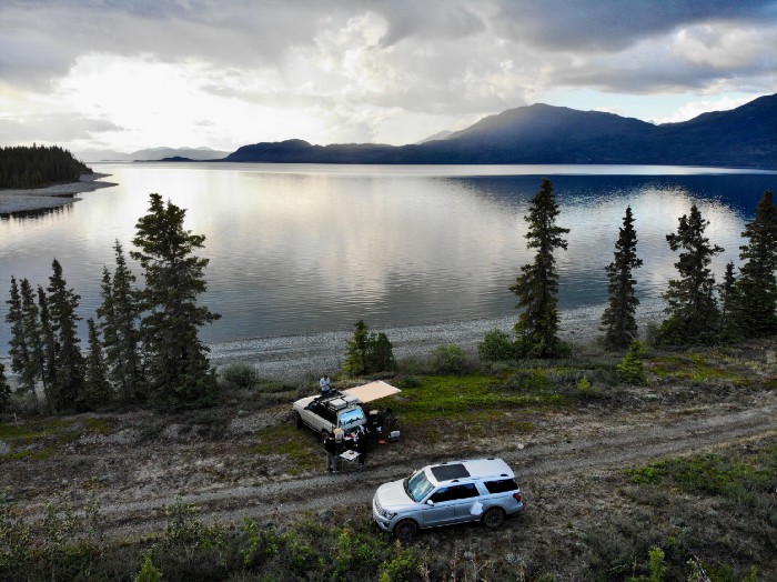 Kluane Lake was our stop for the night. Had to take a couple of miles of a rough dirt road to get to the shore. We were alone for the night. No bear visits.