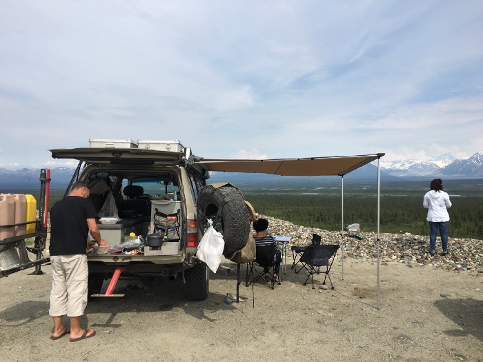 The next two days we traveled north and made it to the Denali Highway. We figured we will make kebabs for lunch with the Alaska Range on the background. We were almost 4000 miles of travel.