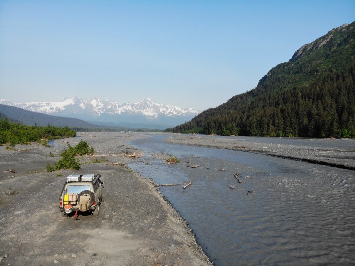We then headed south through Talkeetna, Anchorage to Seward. We camped on the river bank with beautiful views. We logged 5000 miles. One oil change on the road.