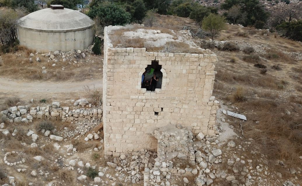 ח'רבת אום א-ראס, על ההגבעה מזרחית לתשובתו של יובב. המבנה העות'מני הנראה בתמונה בנוי על שרידי ישוב יהודי מהתקופה ההלניסטית והרומית. באתר נמצאו גם שרדי כנסיה ביזנטית.