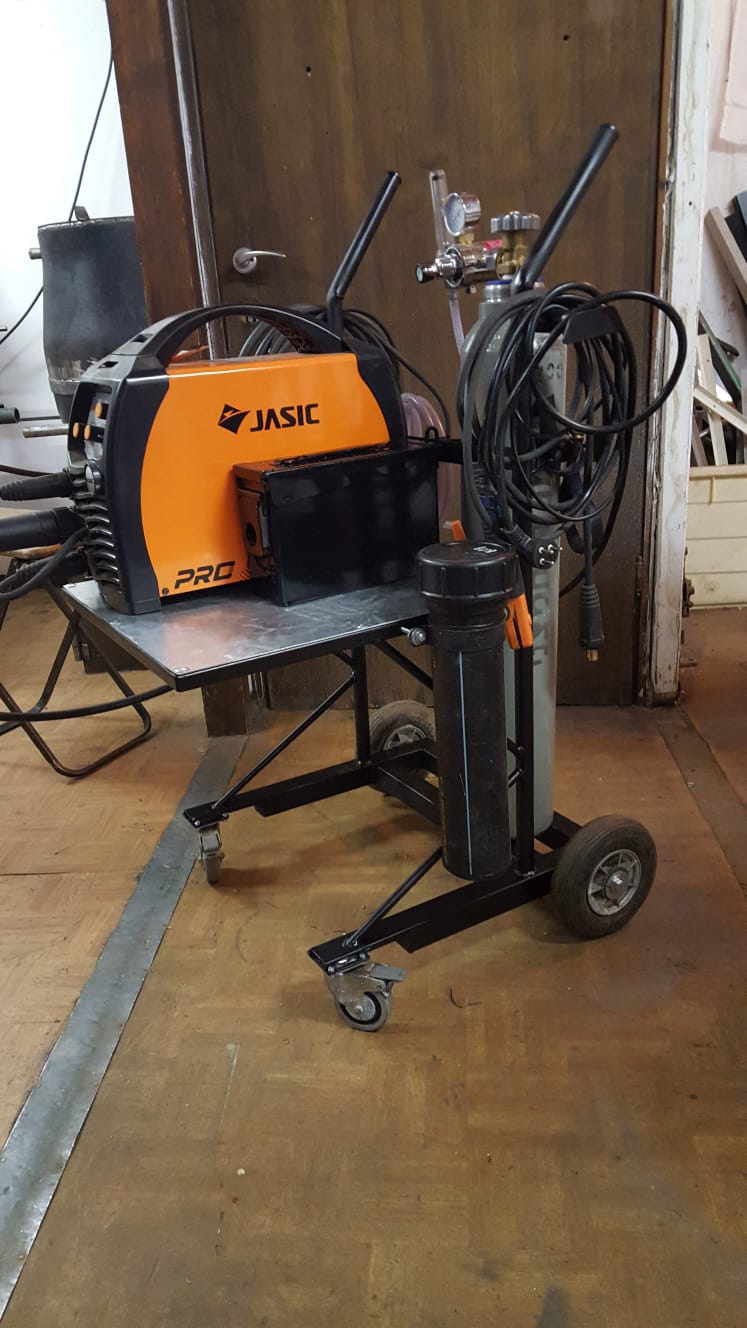 מצרף תמונה של העגלה שאני בניתי- מיועדת לעבודה בתוך סדנא ולהעמסה לרכב, על כן המראה היחסית גוץ. אני גם אוהב במהלך העבודה להניח עליה עוד דברים (פלאייר, קאטר, כפפות וכו') ולכן המשטח הרחב. בארגז הקטן יש דיזות ופיות ספייר.