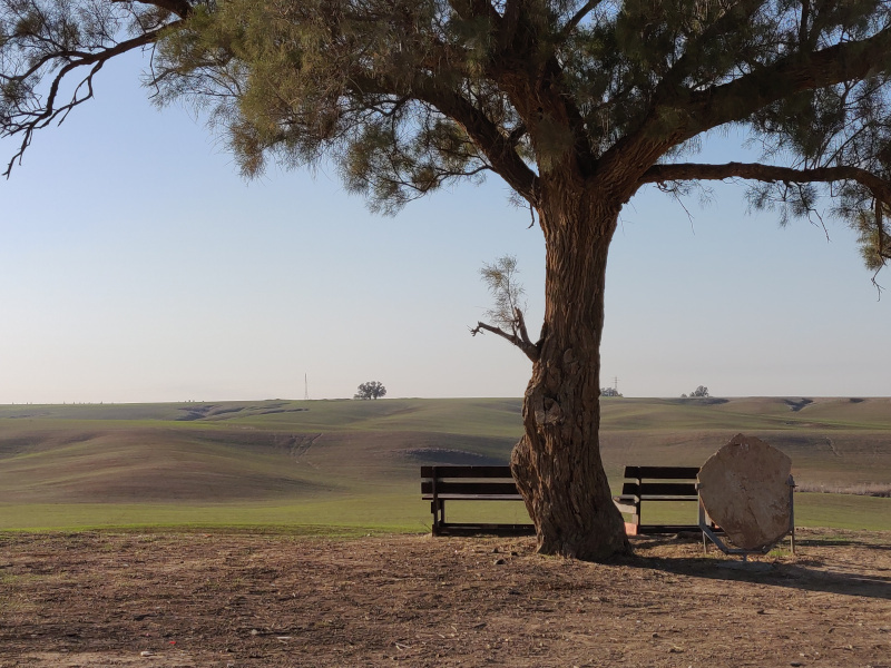 ממש מאחורי קו הגבעות, בכיוון המבט מהספסל, מנחת אבק1. מי שישב שם בליל ה23 לאוגוסט 48 יכל אולי לראות את האבק הרב של נחיתת המטוס הראשון במבצע אבק שמכאן שמו.