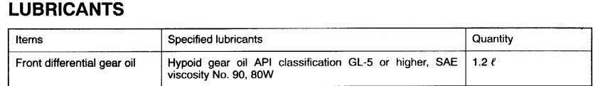 ( Hypoid gear oil API classification GL-5 or higher, SAE viscosity no 90,80W)