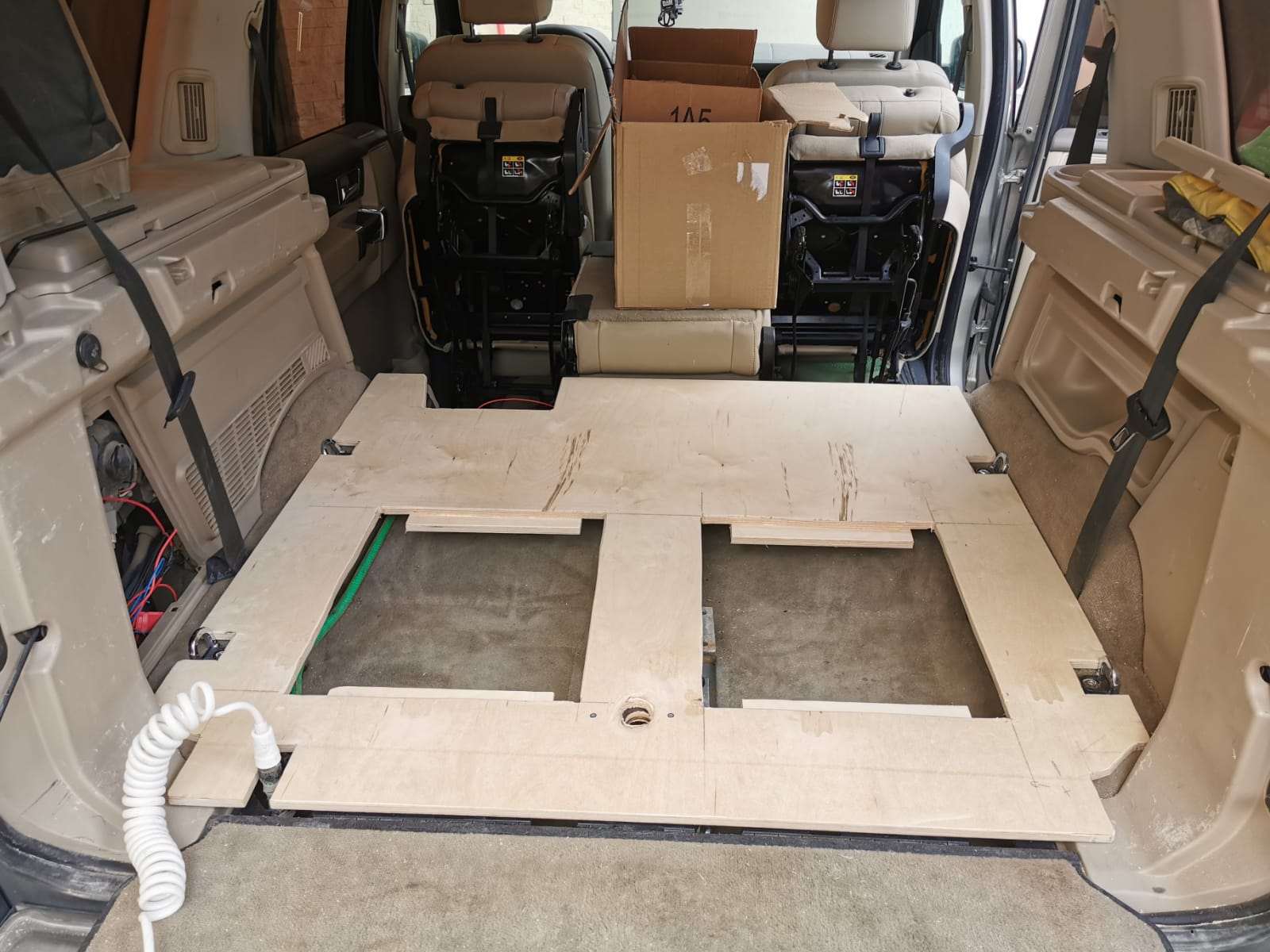 התאים ברצפה לדברים השטוחים (רצועות, ארגז בוקסות) ומנצלים את המקום שהתפנה לאחר הוצאת כסאות 6/7. הוצאת הכיסאות בגלל גישה נדרשת לכננת גלגל אחורית שבשבילה יצרתי מאריך שמשנה את הוו לדרייב 1/2 ויושב קבוע.