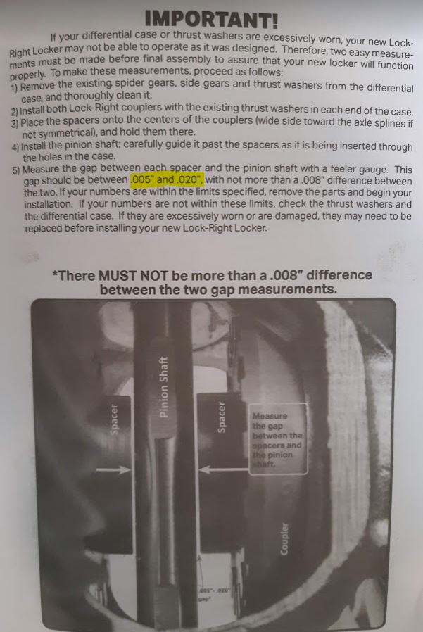 המרווח אמור להיות מינימום 0.15 מקסימום 0.5 מ"מ. במדידה שלי עלה של 0.5 נכנס, 0.6 נכנס בקושי. 0.7 לא נכנס. השאלה אם זה מרווח גבולי או חורג. דסקיות thrust washers המקוריות נראות תקינות. הן בעובי 0.75 מ"מ. האם אפשר להשיג דסקיות בעוביים אחרים? איפה? (מדובר על דיפרנציאל דנה 30 ג'יפ CJ). או שזה מרווח גבולי ואפשר להמשיך בהתקנה?