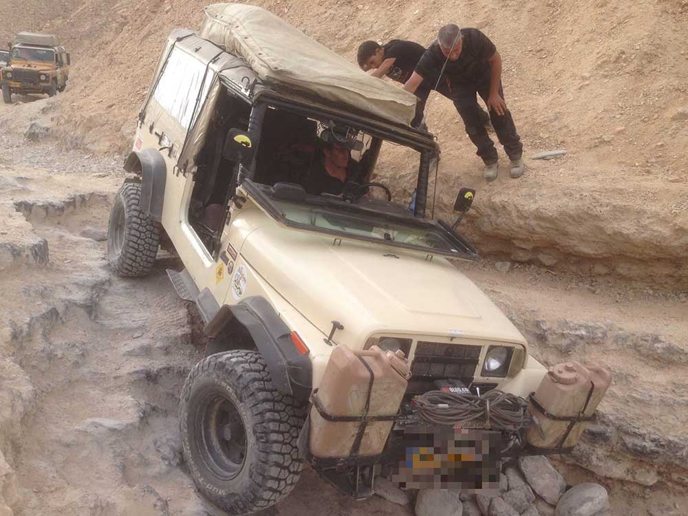 אני לא מכיר רכב סטנדרטי מקובל (לא זיבאר וכו') שיכול לנצח את המדרגה הזו. גם לא רוביקון סטנדרטי (נמוך מדי)