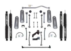 קיט מאוד איכותי. ניתן לבחור איזה בולמים שבא לי. אפילו בולמים זולים. כל הזרועות מתכווננות וצד אחד של כל זרוע הוא בושינג גומי וצד שני הוא חיבור קשיח וחזק. אני שמעתי תלונות על הקיט הזה שהבושינגים והג'וינטים מתבלים מהר מאוד ומתחילים לעשות רעשים כאשר הרכב מתגמש על הסלעים.