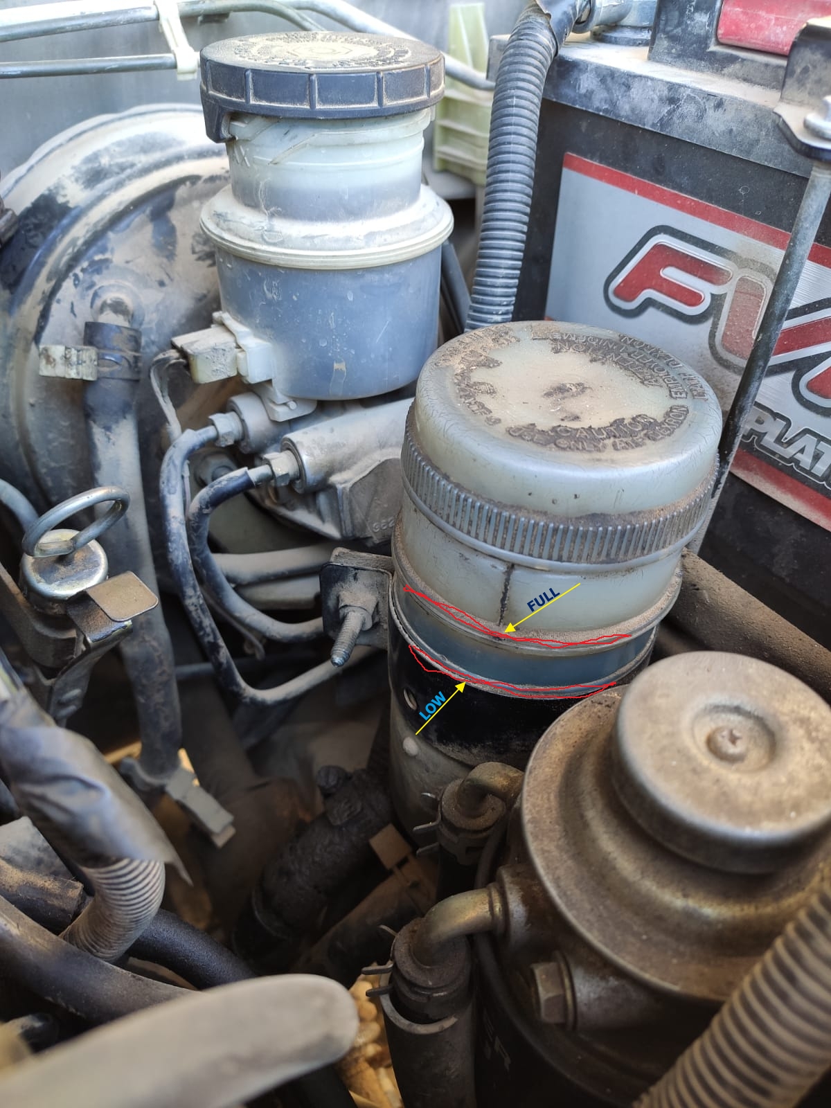 לאחר ניסיונות כושלים להבין את התשובה לבד אני פונה לכאן, אצלי במיכל מילוי של נוזל ההגה לא מסומן עד היכן צריך למלא ומה הקו התחתון, לכן אשמח לעזרה - מה הסימון התחתון ומה הסימון העליון?
