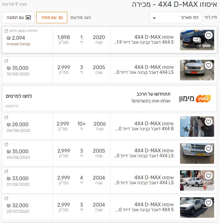 אם המטרה העיקרית היא להעמיס ולעבוד, אז טנדר. עזוב את הטנדרים הסקסיים יותר, היילקס והאנטר, ותתרכז במזדה BT50 או איסוזו דימקס בני 15 פלוס מינוס. נכון, הם יהיו עם 350-400 אלף קילומטר במחיר שאתה מוכן לשלם, אבל הם סוסי עבודה ואמינים יותר מיונדאי טראקן או גלופר. יש לא מעט בלוח יד2.