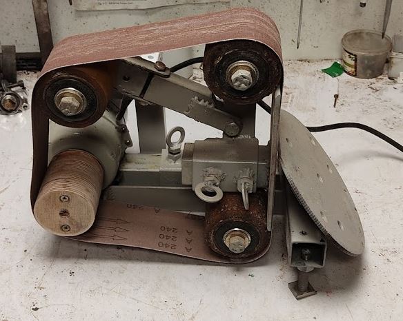 1. כיוון ההשחזה שלך לא נכון. הסרט מורכב הפוך. המנוע מסתובב הפוך. הסרט צריך ללחוץ את החומר כלפי הפלטה העגולה, מטה, ולא להרחיק ממנה.(הגיצים אמורים להיפלט כלפי מטה)