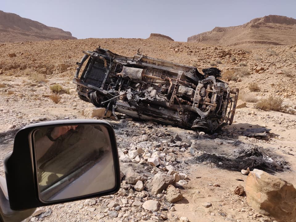 טיילנו אתמול בנחל ערוד וראינו רכב טויוטה ששוכב על צידו - שרוף לגמרי, שרוף ברמה שהמיגונים נמסו לגושי אלומיניום.
