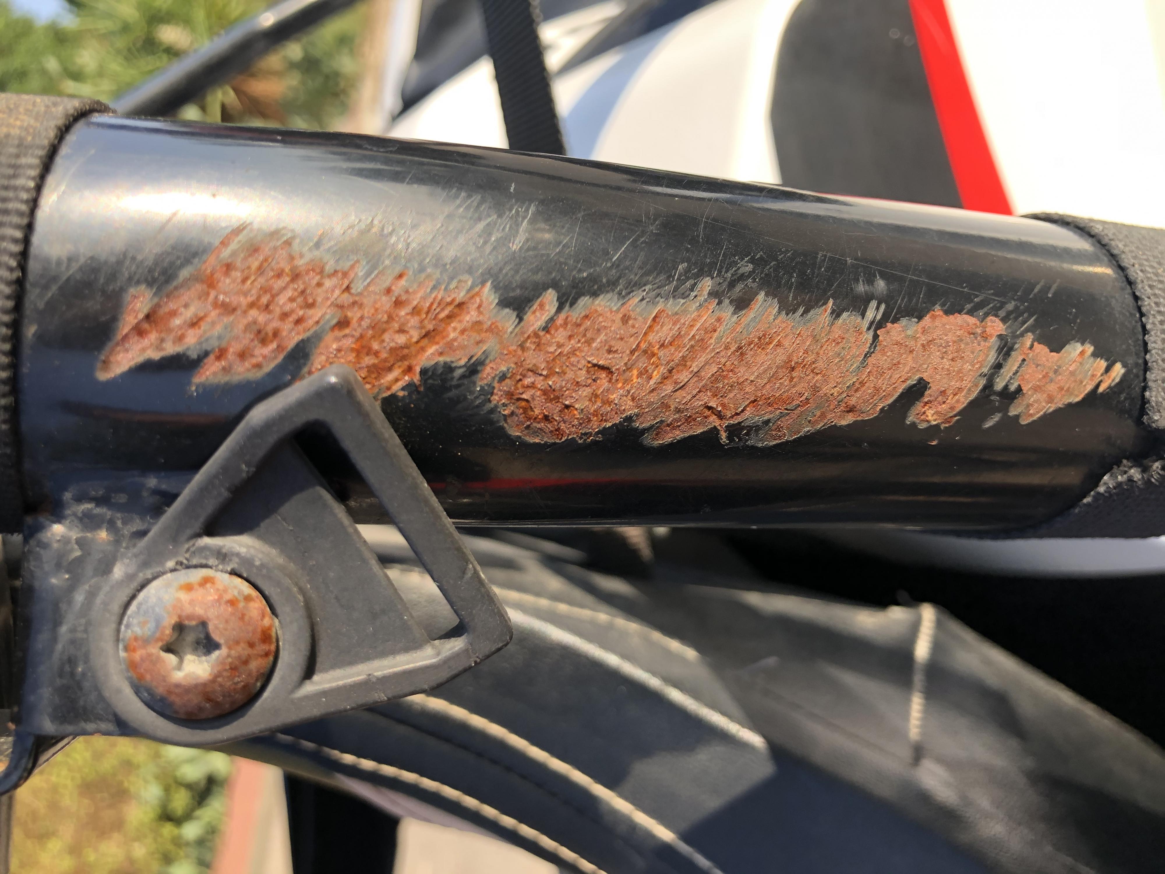 אני לא אתפלא אם הכלי הזה נסע לא מעט בחול ים ונחשף למי מלח, ולא נשטף בקפידה ואלו אינדיקציות להזנחה נראית לעין וסיכון להזנחה לא נראית לעין.