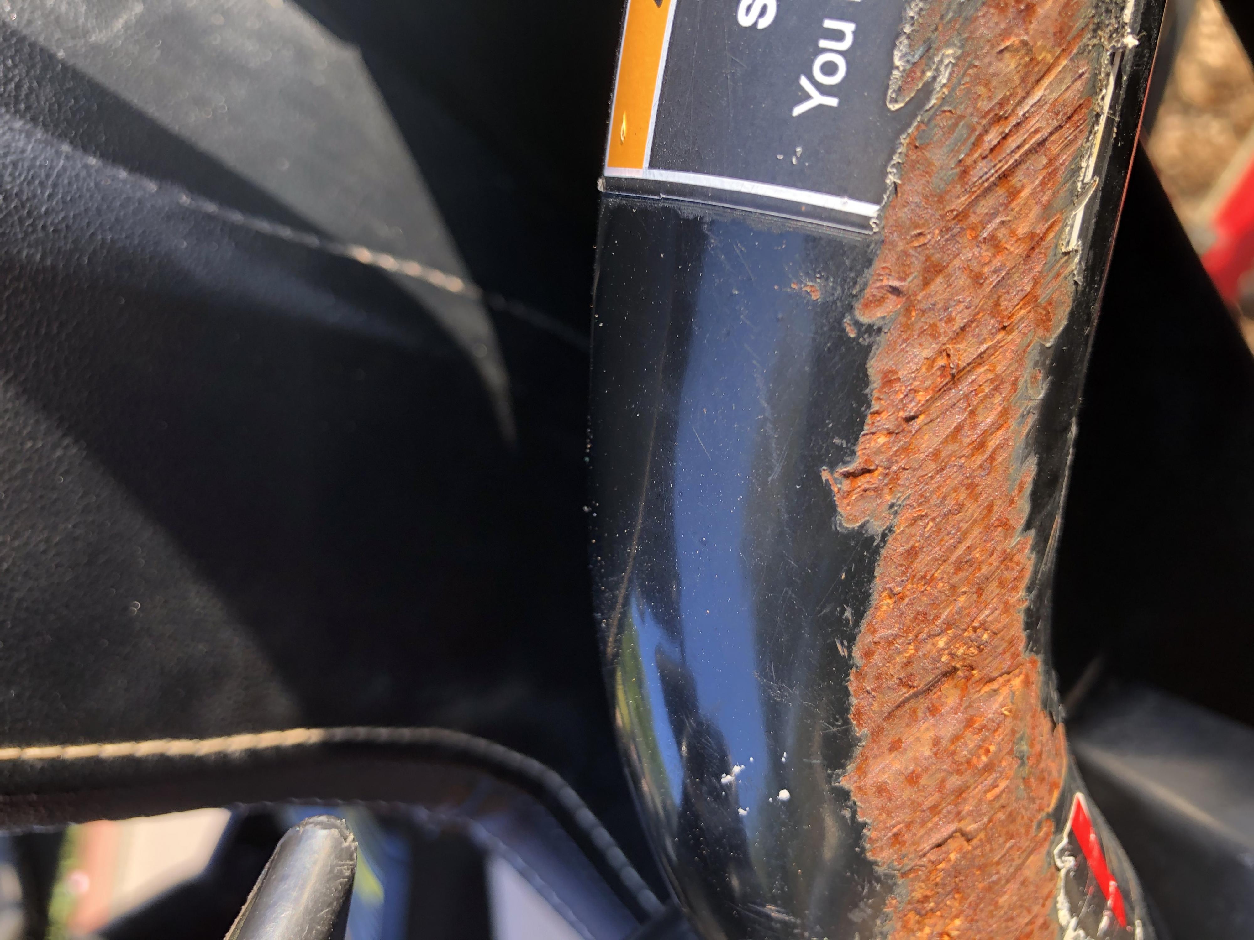 1. בכלוב ההתהפכות יש שני שפשופים עמוקים, בעומק של 2-3 מ"מ. המוכר טוען שהכלי גרד קיר בתמרון חניה גרוע. לי לא נראה שהכלי התהפך. לטענתו, זה קרה לפני זמן לא רב ועכשיו עקב הגשמים עלתה חלודה שטחית. זה ספציפית נשמע נכון כי התמונות במודעה שפרסם מראות את השפשוף ללא חלודה.