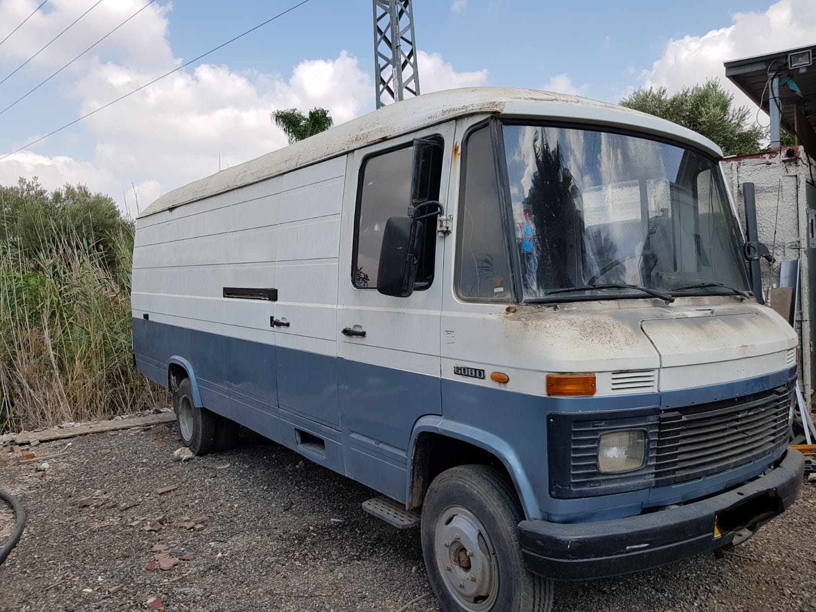 מרצדס L608D מודל 83', 400,000 ק"מ, 2X4, רשומה כאספנות + מרכב אחוד מגורים ברישיון (משמעותי מאוד למי שמעוניין לבנות קרוואן), גיר רגיל כמובן, בלמי אוויר, בעלת יכולת עבירות מרשימה בשטח. מצב מכני מצויין, יש חורים בגג שצריך לתקן (קניתי כבר יריעות פח מתאימות).