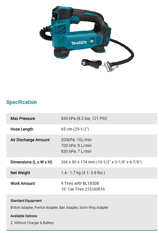את המקיטה 18V לא הייתי מאתגר בארבע צמיגי 32" מ 10 ל ל35 psi