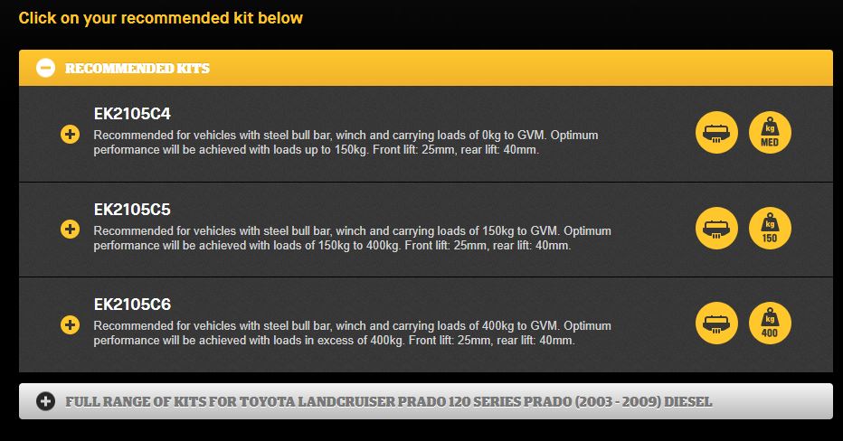 ראיתי באתר של חברת Old Man שישנם 3 סוגי חוזק של קפיצים רלוונטיים לדגם הזה של טויוטה: