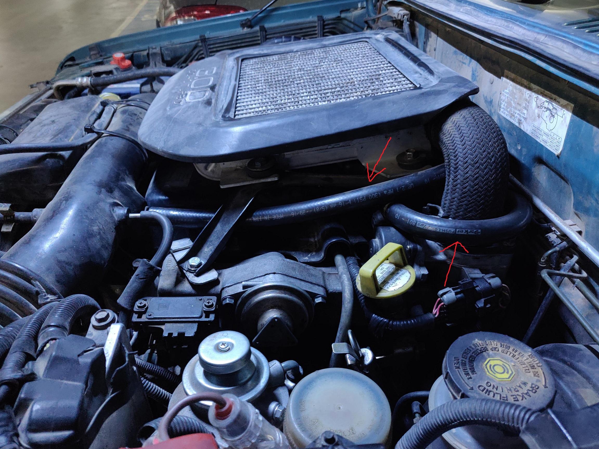 4. פרק את הצינור הקיים שיוצא ממכסה השסתומים לסעפת יניקה והפוך אותו, כך שהקצה הקצר עם הכיפןף 90 מעלות שלו יתחבר לפחית והקצה שני יתחבר ליציאה במכסה שסתומים.