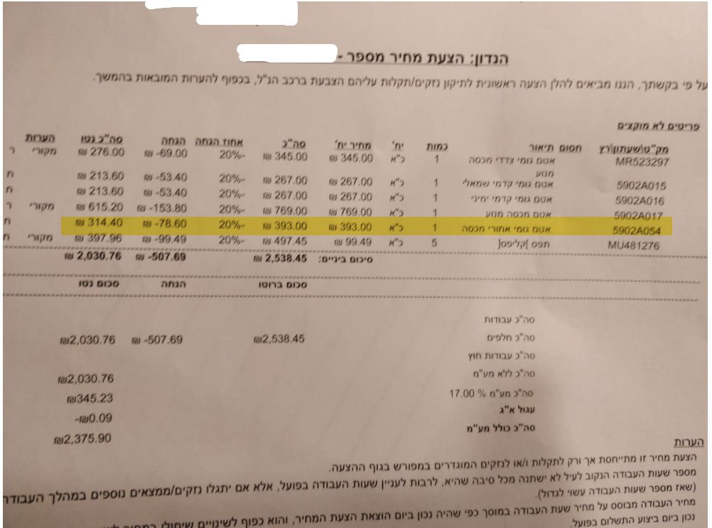 בתמונות מצורפת גם הצעת מחיר שקיבלתי ממיצובישי
