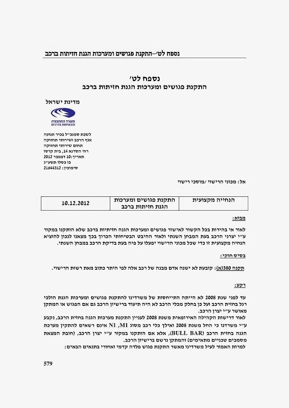 להבנתי גם מה שרשמת לגבי רכב מלפני 2008 לא נכון, אני לא חושב שיש אישור לפגוש מתכת לרכבים לפי שנה וזו טעות נפוצה בגלל ההתייחסות למגן חזירים שנאסר החל מ-2008 למיטב זכרוני.