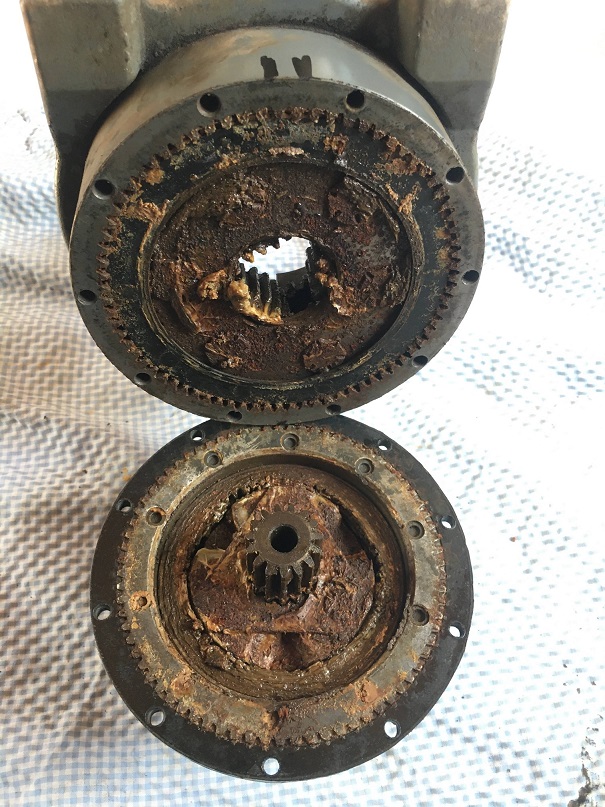 ארבע שנים לאחר מכן, המנוע סיים את חייו ונתקע, הכבל החליד (כפי הנראה כבל מאיכות נמוכה, למרות שנרכש בבית מלאכה לעגורנים בחו״ל) וברור שגם לגיר הפלנטרי לא יזיק ניקוי וגירוז. צמת חוטים חדשה לקופסת הסולונואידים חיכתה אצלי להחלפה וכך גם שלט רחוק אלחוטי. לביא תרם לי כבל מקורי (תודה!) במצב חדש שהוחלף אצלו לסינטטי, ועם תום עונת הבוץ ניגשתי לעבודה.