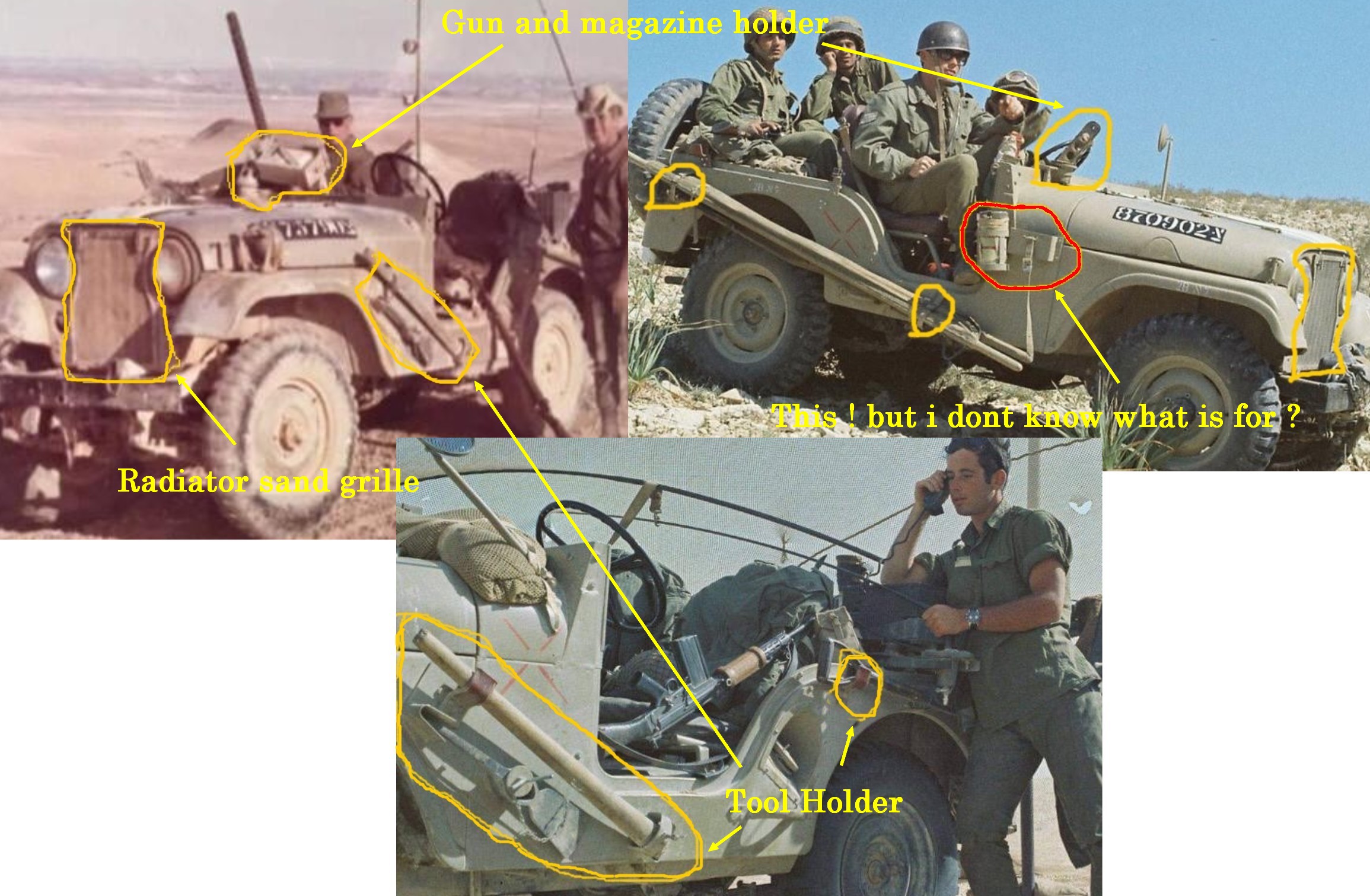 עוד אציין כי ניתן לראות בבירור שקסדתו של המפקד הסמל בתמונה הימנית אינה רכוסה (!) ועל שני הליצנים בג'יפ השמאלי אני בכלל לא רוצה לדבר.