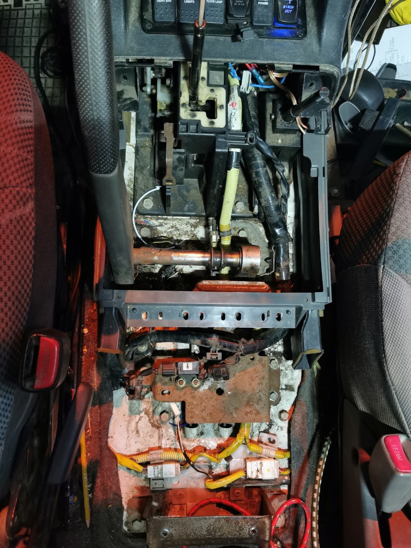פותחים את הברגים שמחזיקים את כל מכלול ידית ההילוכים(הפלסטיק השחור הגדול), ומקבלים גישה מלמעלה לכל אזור הגיר והטרנספר.