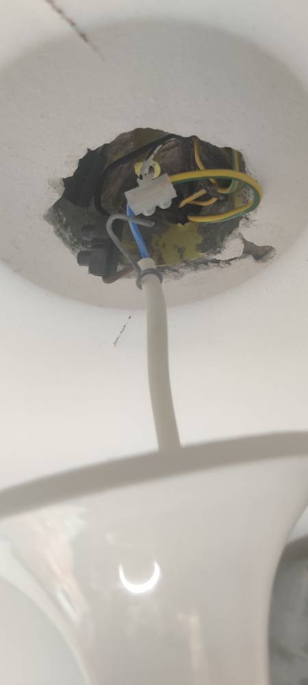 איפה שהוא, על הקיר, צריך להיות מכסה (עגול) על קופסת חיבורים. שם הפאזה החוזרת מהמתג מצטרפת לאפס ולהארכה אל המנורה.