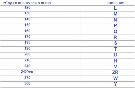 כי קוד המהירות לכלל סוגי הצמיגים יהיה S