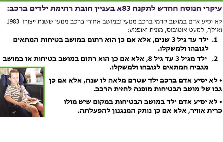 הסעת ילד במושב הקדמי (תיקון: תשמ"ד, תשנ"א)