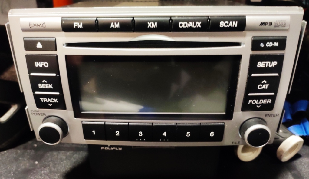 מערכת מקורית של יונדאי סנטה פה (מודלים עד 2010) - מודל אמריקאי , כלומר הטיונר הוא לתדרים אמריקאיים ולא לרוב תדרי הארץ (כפי שמופי במדבקה בתמונה),