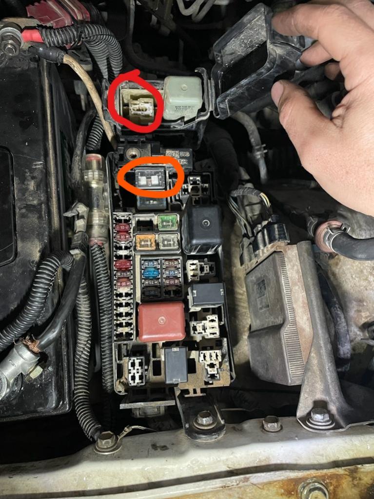 היילקס 2003 (4X4), נדלקה לי נורת ה ABS לפני כחודש והשבוע היה לי זמן להתעסק עם זה. באבחון ראשוני גיליתי שהפיוז (80 אמפר) שרוף (מוקף בכתום בתמונה).