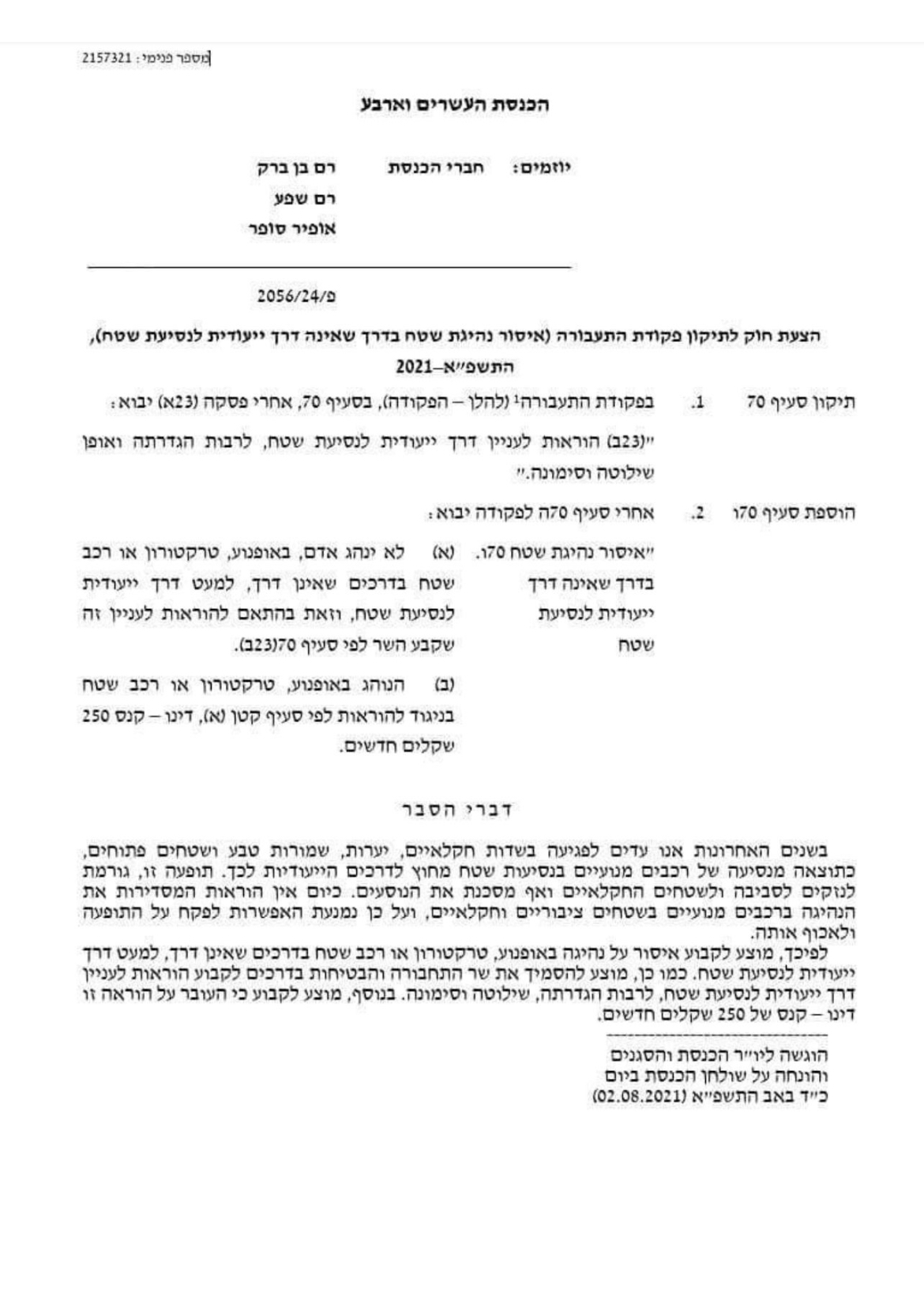 זה לא אחד באפריל- אנא קיראו (הגבלת נסיעת רכב בשטח בחקיקה)