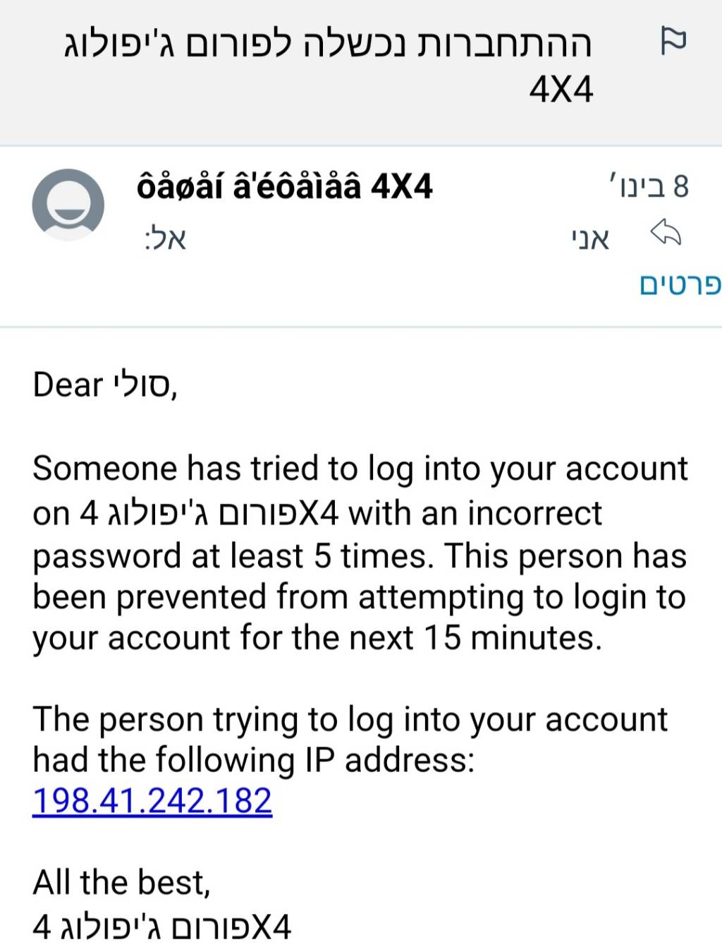 גם אתמול וגם היום אני מקבל מהמערכת שלכם הושעה על כך שניסו להיכנס לחשבון שלי... האם זה רק אני או שיש עוד משתמשים שמקבלים הודעות דומות?