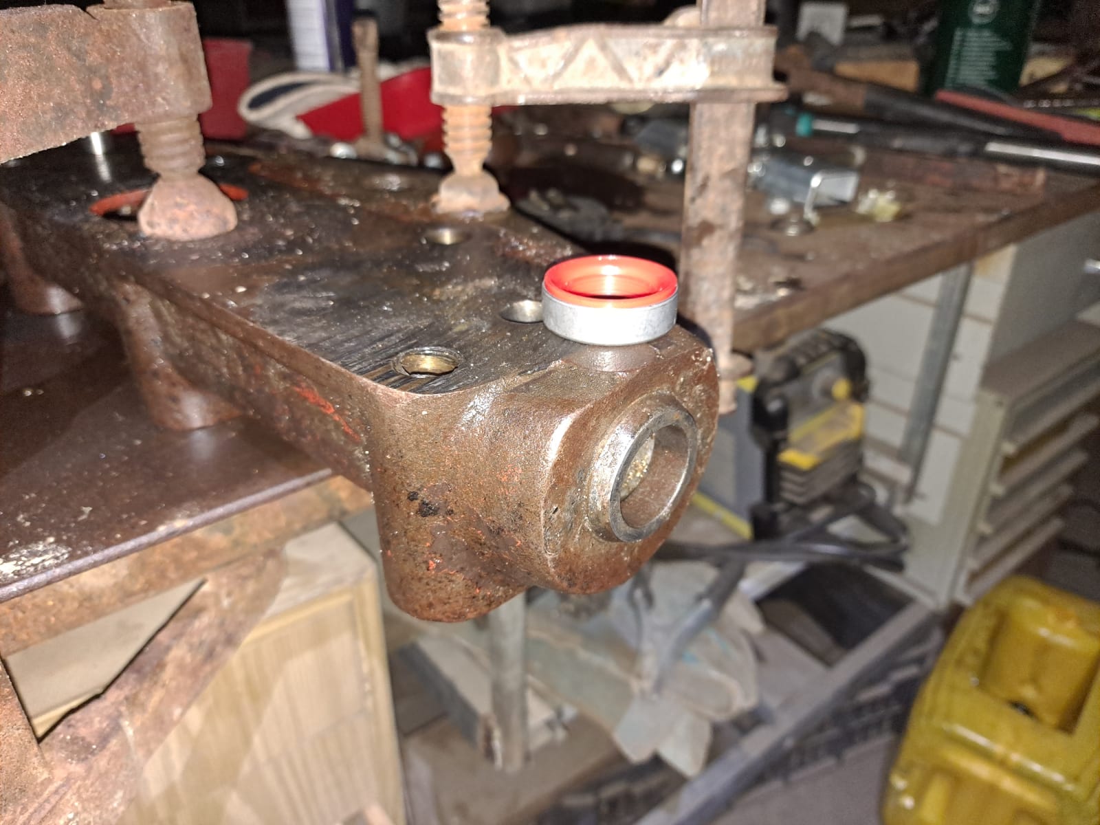 מוט הרגישות (מוט שמחזיק את שתי הזרועות התחתונות של המערכת ההידראולית) נזל מצד שמאל. פירקתי את כל התחתית ועכשיו צריך להחליף את מחזיר השמן. על החור שדרכו עובר מוט הרגישות יש טבעת שסוגרת את כל הסיפור.