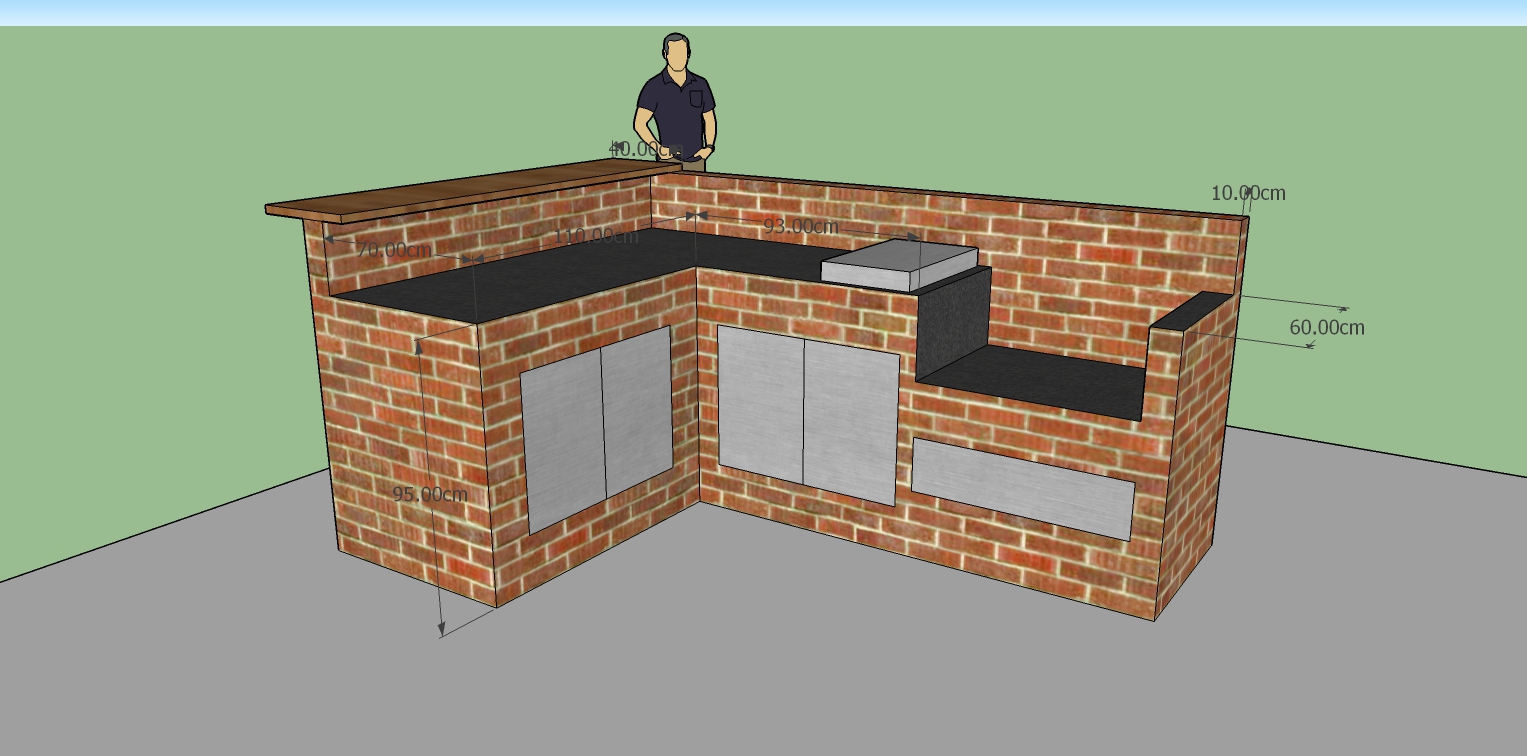 מתכנן לבנות יחד עם חבר מטבח חוץ. המטבח יהיה בצורת "ר" - הצלע הארוכה תהיה 180 ס"מ והצלע הקצרה 160 ס"מ בערך.