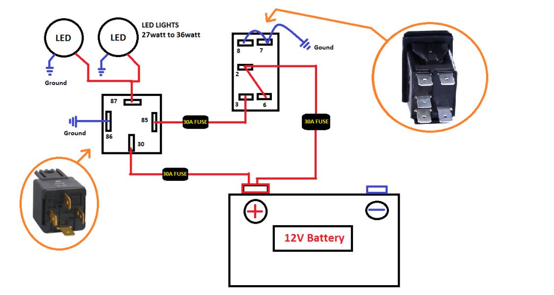 את הריליי אתה יכול לחבר ישירות למצבר, את המפסק לחיבור אחר אחרי הסוויטש (לדוגמא שקע מצת).