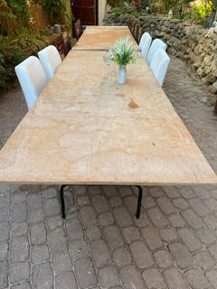 למהירי החלטה במסגרת ארגון מחדש של החצר מוכר שני שולחנות אירוח גדולים מתקפלים.