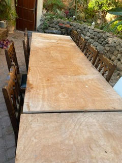 השולחנות תקינים, פלטות העץ והרגליים תקינות. ניתן להשתמש בהם כמות שהם או לפרק בקלות השולחנות ולעשות שימוש ברגליים לטובת שולחן מתקפל לשטח ובעץ נו..יש אין סוף אפשרויות שימוש.