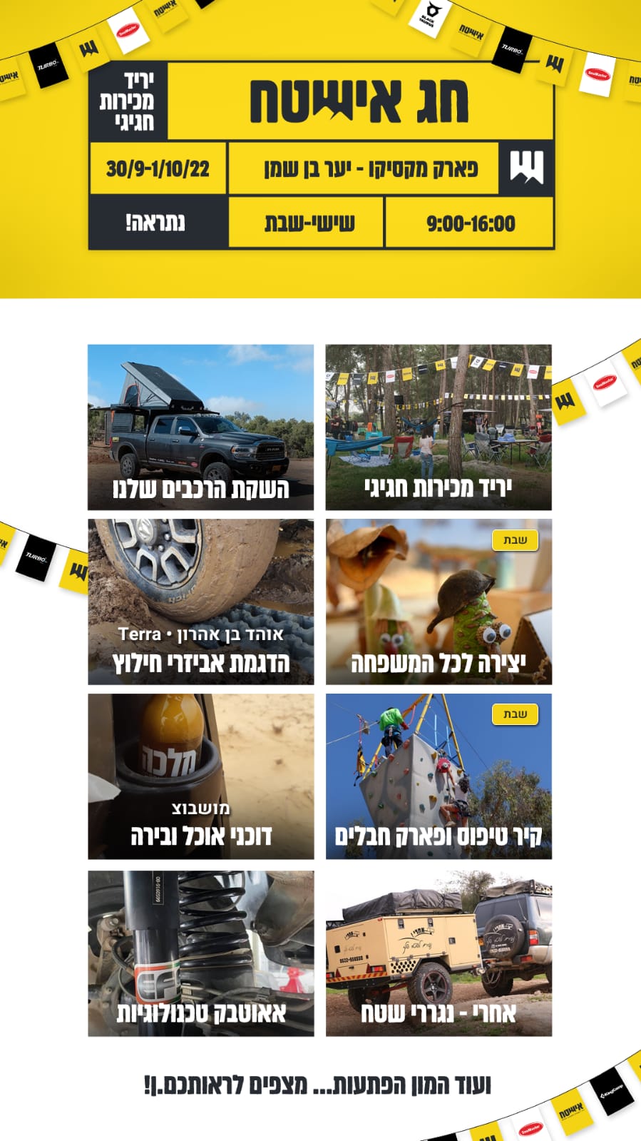 בסופ"ש הקרוב - חג אישטח 💫 יריד מכירות חגיגי של ציוד קמפינג, ציוד לרכבי שטח והנחות שוות במיוחד