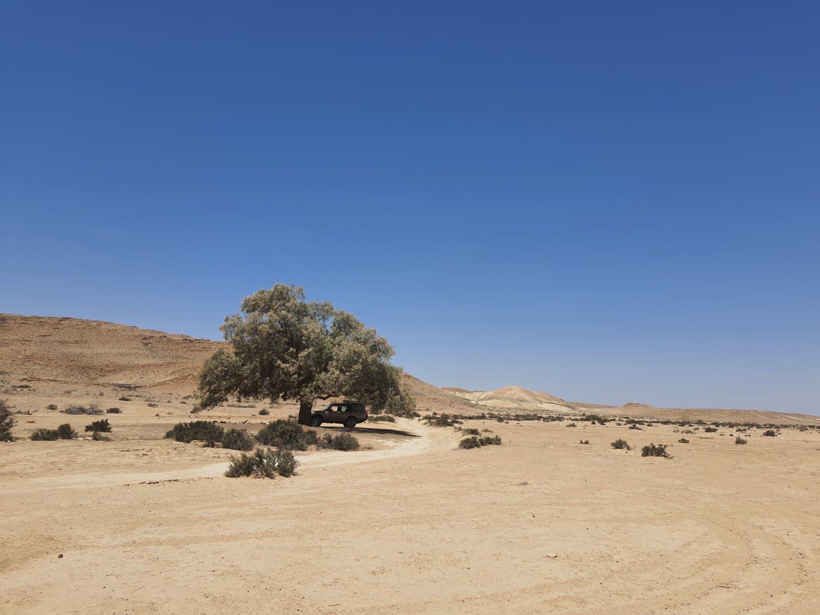 אחרי הטיול שבתמונה, קראתי קצת חומר אודות אלות אטלנטיות (לא יודע אם רלוונטי גם לאשל שבתמונה), לפיו, התקרבות עם הרכב עד מתחת לעץ יוצרת הידוק של הקרקע שפוגע ביכולת של מערכת השורשים הקרובה לפני הקרקע לקבל מים. ולכן, מאז אני משתדל להמנע מלחנות תחת עצים במדבר. גם במחיר של רכב רותח בסוף העצירה (בשביל זה ה' המציא מזגן).