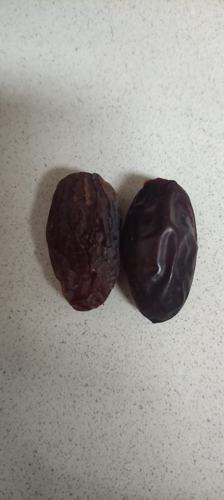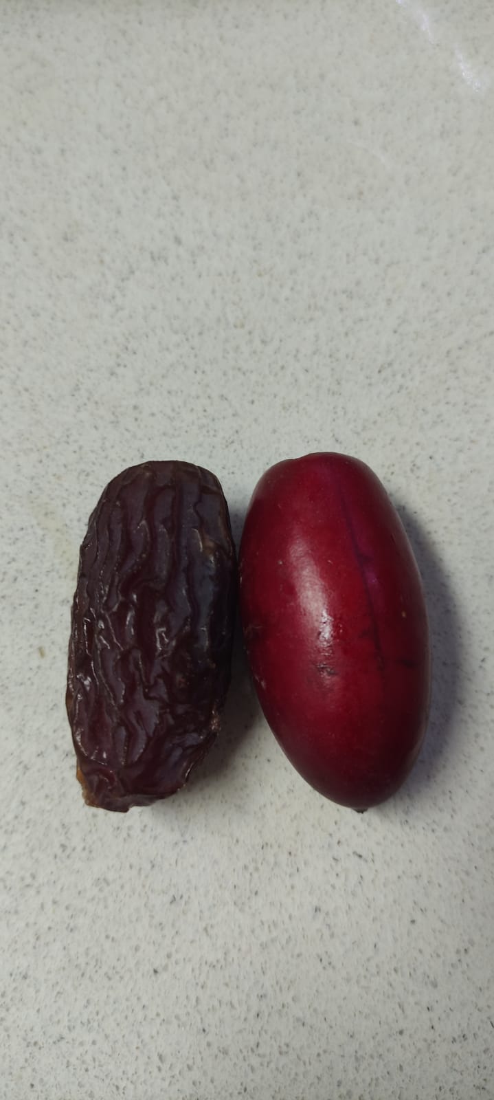 החימום/ייבוש שינה את מראה הפרי- כאילו הוא הבשיל, אבל אני חושב שהוא עדיין בוסר (אני מתכוון לפרי שהיה אדום). לגבי הפרי השני, הוא כבר היה בשל, ובשלב זה ייבוש ישנה את המרקם שלו, וכתלות בזן, וברמת הלחות שהיתה בו בתחילת הייבוש, זה יכול להיות לטובה וגם לרעה. למשל במג'הול, ייבוש לרמה כזאת יפגע באיכותו.