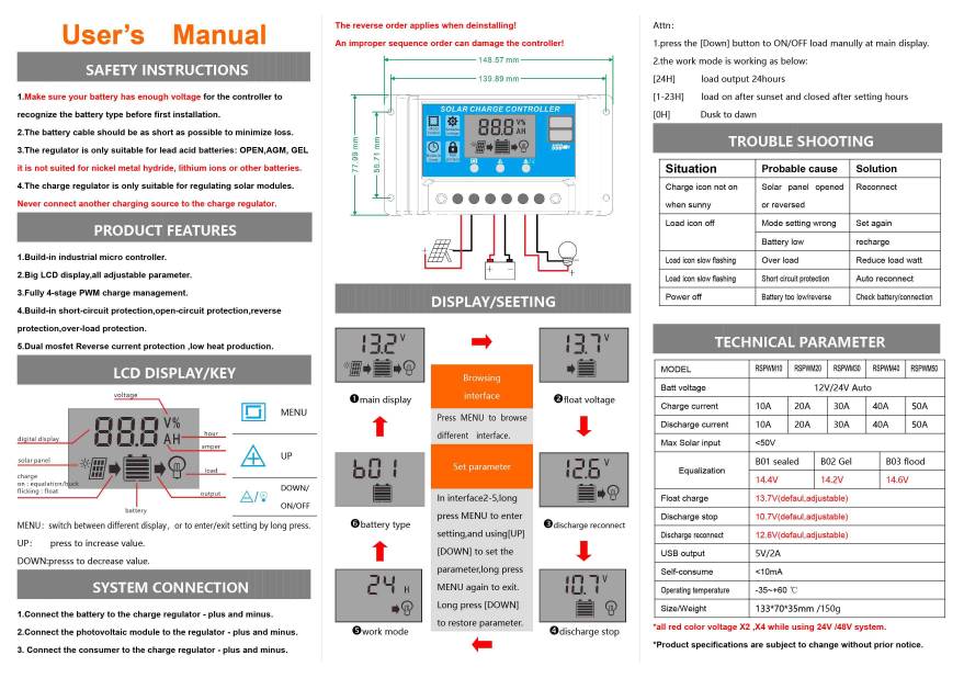 הפנל מחובר למצבר דרך מטען סולרי מצ'וקמק pwm 10a.