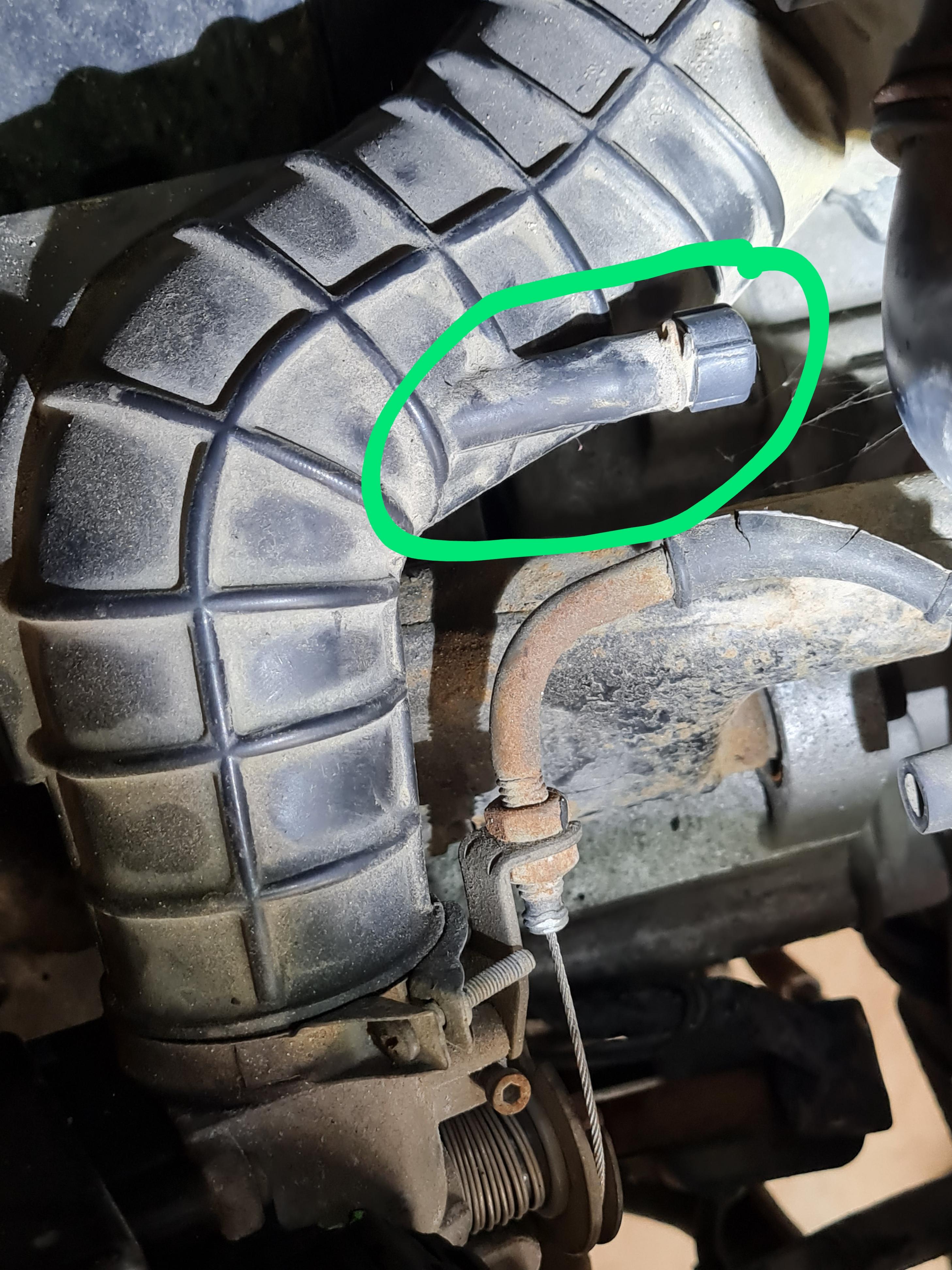 הקצה של מה שמוקף באדום מתחבר לקופסת האוויר שים לב שיש שם קליפס בקצה.