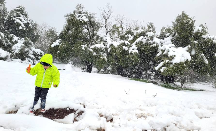 לקראת החרמונית כבר התחיל לרדת שלג של ממש, שלא מפסיק לרדת. על הרצפה בנתיים לא יותר מעשרים-שלושים סנטימטרים, אבל בקצב שממשיך לרדת, נראה לי שמחר יהיה כיף.