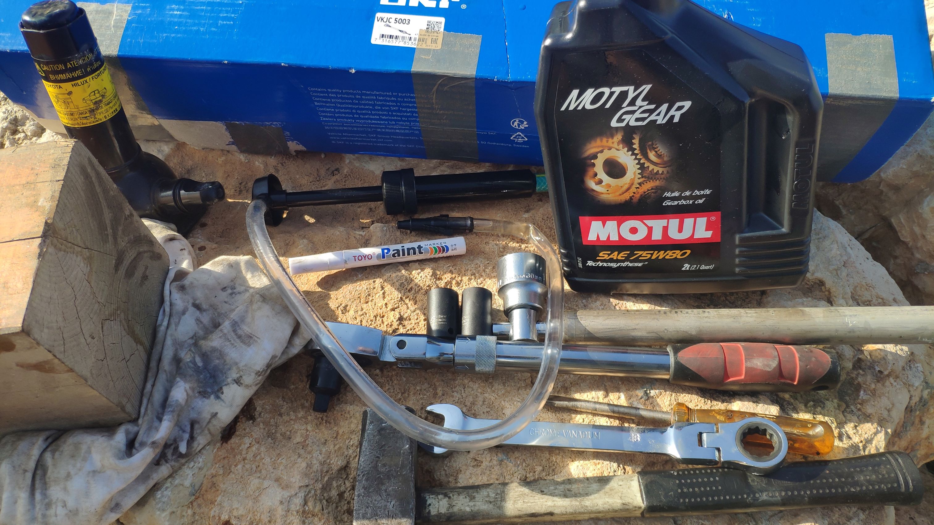 - שמן גיר 75W-80 – רצוי שיהיו ברשותכם לפחות 2 ליטרים כדי לא להיתקע אם נשפך הרבה שמן בתהליך הפירוק וההרכבה. ולמה שמן גיר ולא שמן דיפרנציאל? כי הצירייה מחוברת לדיפרנציאל דרך הגיר.