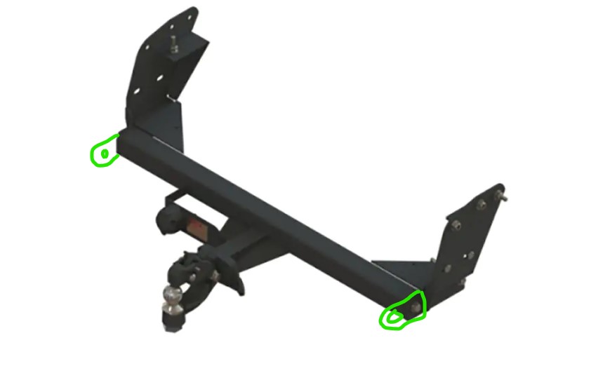 אם יש לך כבר התקן גרירה שמחובר לקורות השלדה, קנה בחנות חומרי בניין זוג מה שנקרא "אוזן ריתוך", חור בקוטר 20 מ"מ. תרתך אוזן אחת בכל צד של התקן הגרירה סמוך לקורות השלדה. אם אתה לא מרתך בטח יש לך חבר שכן.