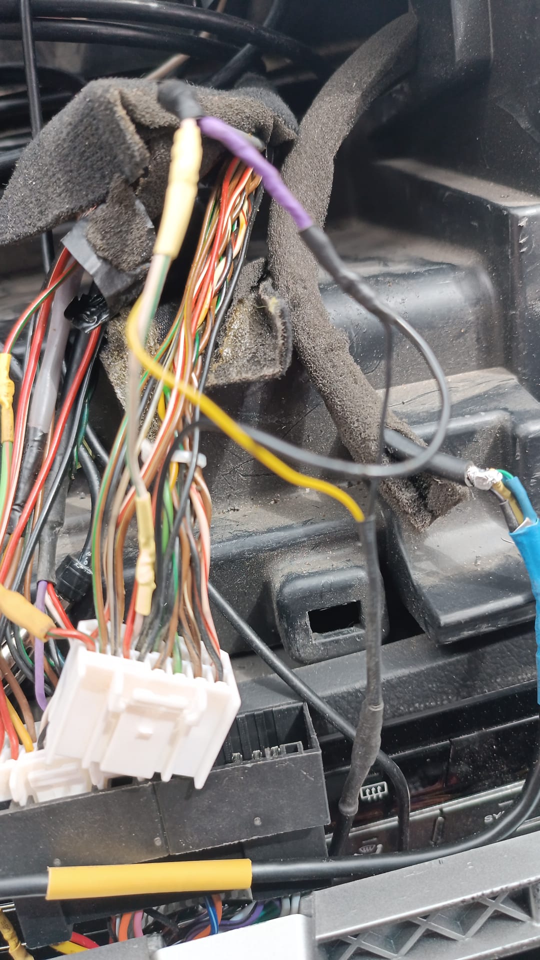 חברו את מחברי הRCA לכניסה A במכשיר, ואת המחבר הקטן מהם למאוורר המכשיר.. את מחברי הRCA של המצלמה האחורית לכניסה F, את מחבר הRCA, חברו חוט מרכזי לרגל 13 במחבר של ה-18 פין (חוט בצבע לבן שחור) בתמונה מוגדש באפור, ואת האדמה/סיכוך, לרגל 14 במחבר של ה-18 פין (חוט מסוכך, עליו בידוד כנראה סגול), בתמונה מודגש בסגול.