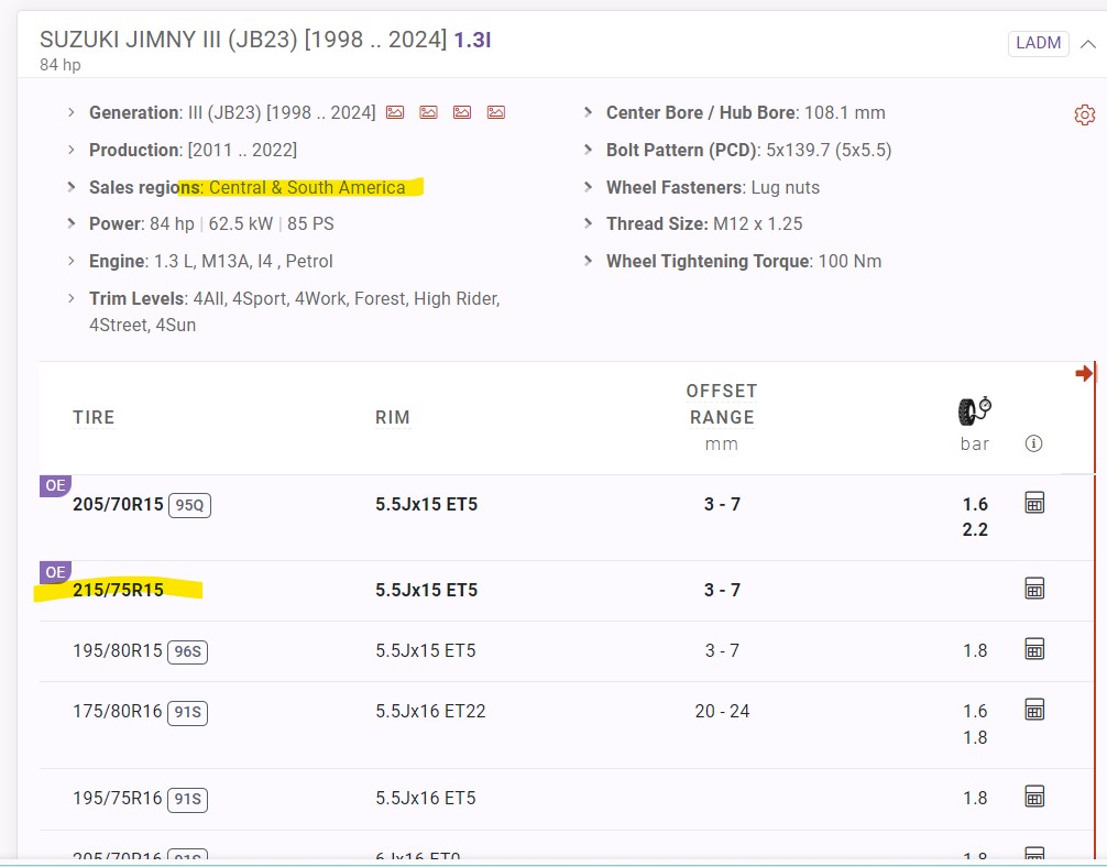 זה אפשרי כי ג'ימני נמכר בשווקים מסוימים עם צמיג 215/75R15. זה אמור להיות שינוי ברור מאליו, אבל כל הכבוד למי שהצליח לשכנע ולמי, ברשות הרישוי, שהצליח להשתכנע.